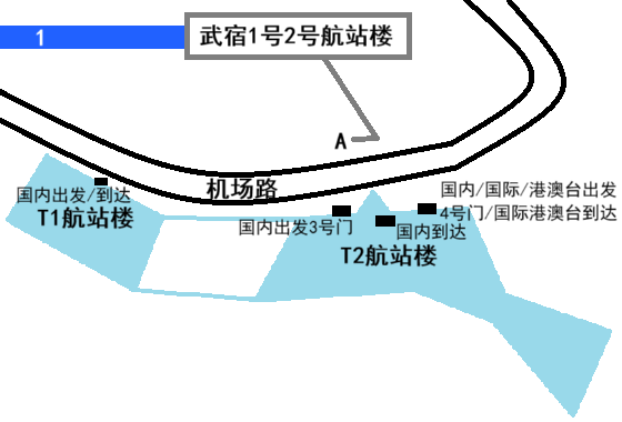 而乘坐1号线线到达武宿1号2号航站楼时,只需从A口出站过马路后即可前往对应的航站楼(T1或T2)转乘飞机。