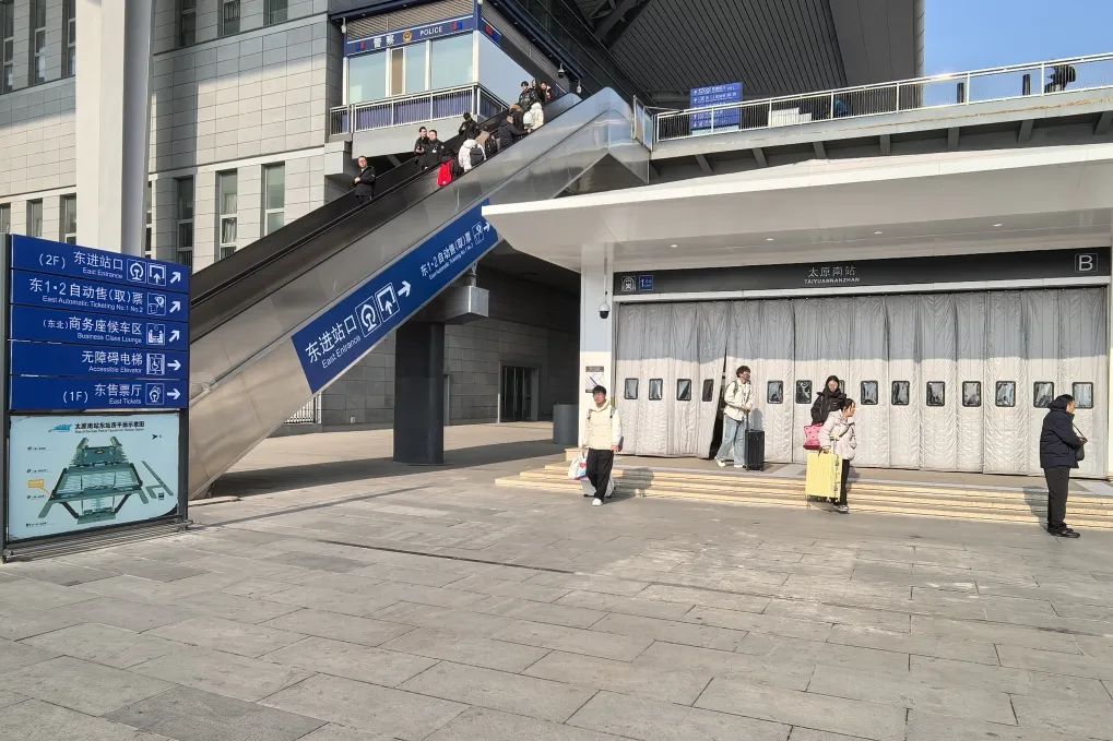 乘坐国铁到达太原南站出闸欲转乘地铁1号线时,需要从东出站口出站后,直接根据站厅指示即可前往对应区域乘坐地铁。