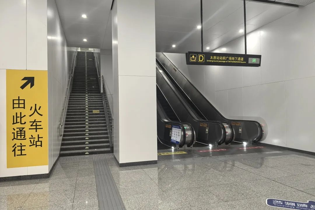而由地铁欲转乘国铁,通过D出站口出站进入地下通道后即可直接通往太原站。